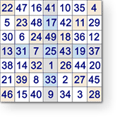 Von links oben nach rechts unten bilden die Zahlen 22, 23, 24, 25, 26, 27,